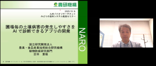 また、参加者から、土壌病害の発生予測、土壌病害のAI診断、堆肥の肥効見える化、良質堆肥作り、畝間除草、等の質問があり、各講師から具体的な事例を踏まえ分かり易い内容での回答がありました。